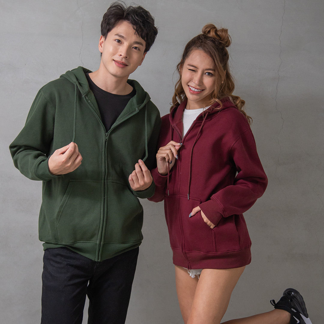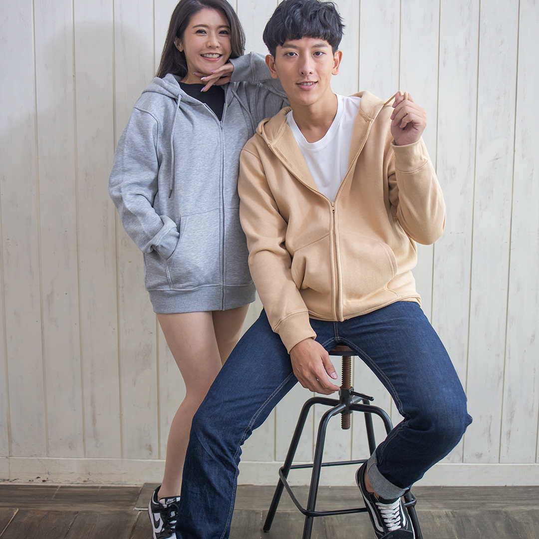 A:大學T 更簡約清爽,連帽外套則保暖且有層次感,兩者都能加印 LOGO。